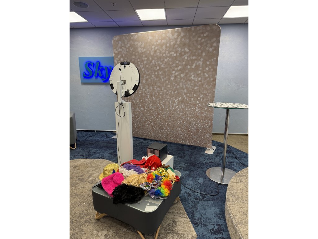 Jedná se o konstrukci se světelným kruhem, ve kterém je iPad se speciálním software, díky kterému si můžete vybírat, zda chcete tvořit fotky, pohyblivé GIFy nebo zpětné sekvence - boomerangy. Samozřejmostí je vlastní grafika - úvodní obrazovka a štítek (proužek) u každé fotky. Úložiště není omezeno, takže až Vaši hosté objeví GIFy a boomerangy, mohou jich vytvořit neomezené množství. Termosublimační tiskárna vytiskne fotku během 30 sekund, rozměr fotek je buď 10x15 cm nebo 10x10 cm.